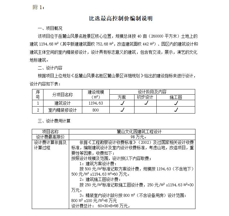 1、本次比選最高控制價為:人民幣980000元(含稅),詳見附1。