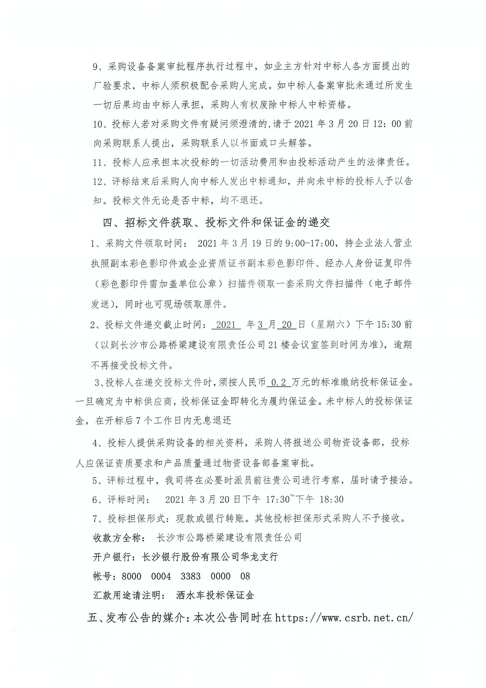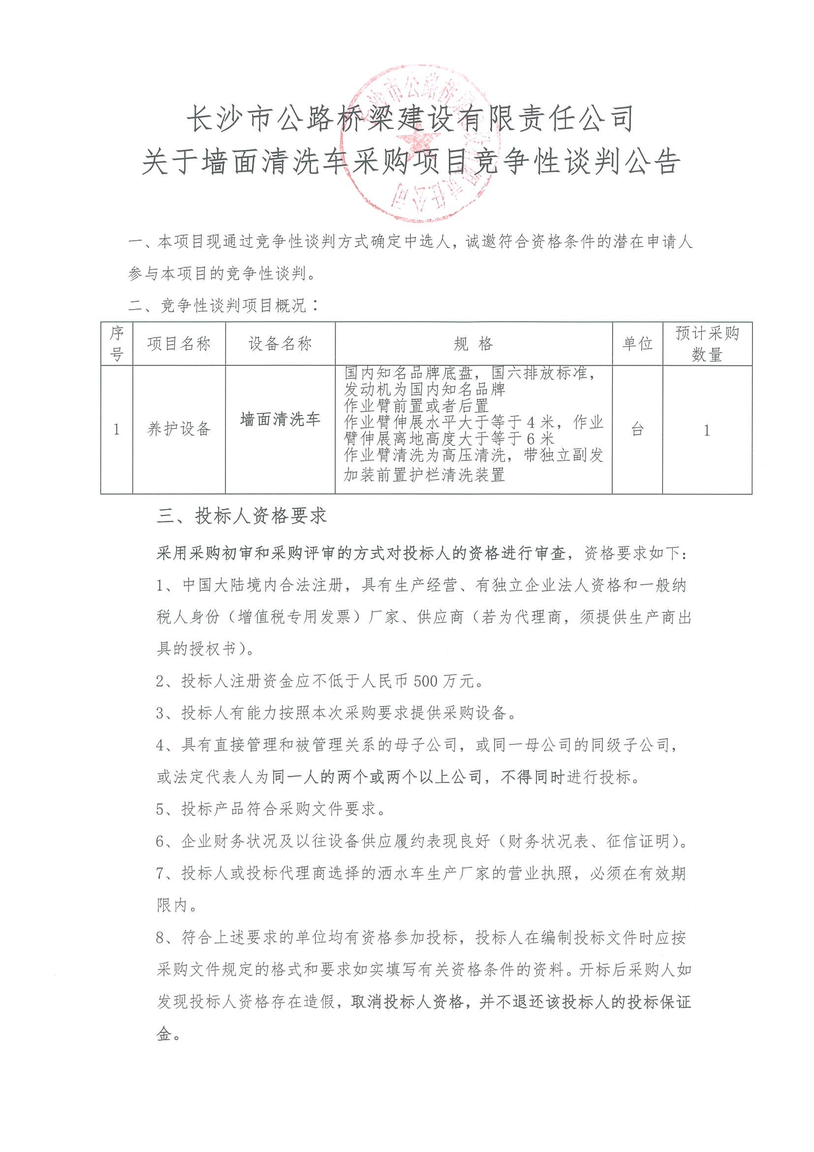 長(zhǎng)沙市公路橋梁建設(shè)有限責(zé)任公司關(guān)于墻面清洗車采購(gòu)項(xiàng)目競(jìng)爭(zhēng)性談判公告