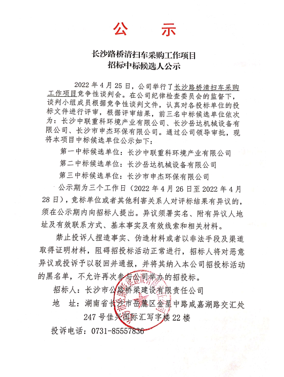 清掃車采購談判邀請公告